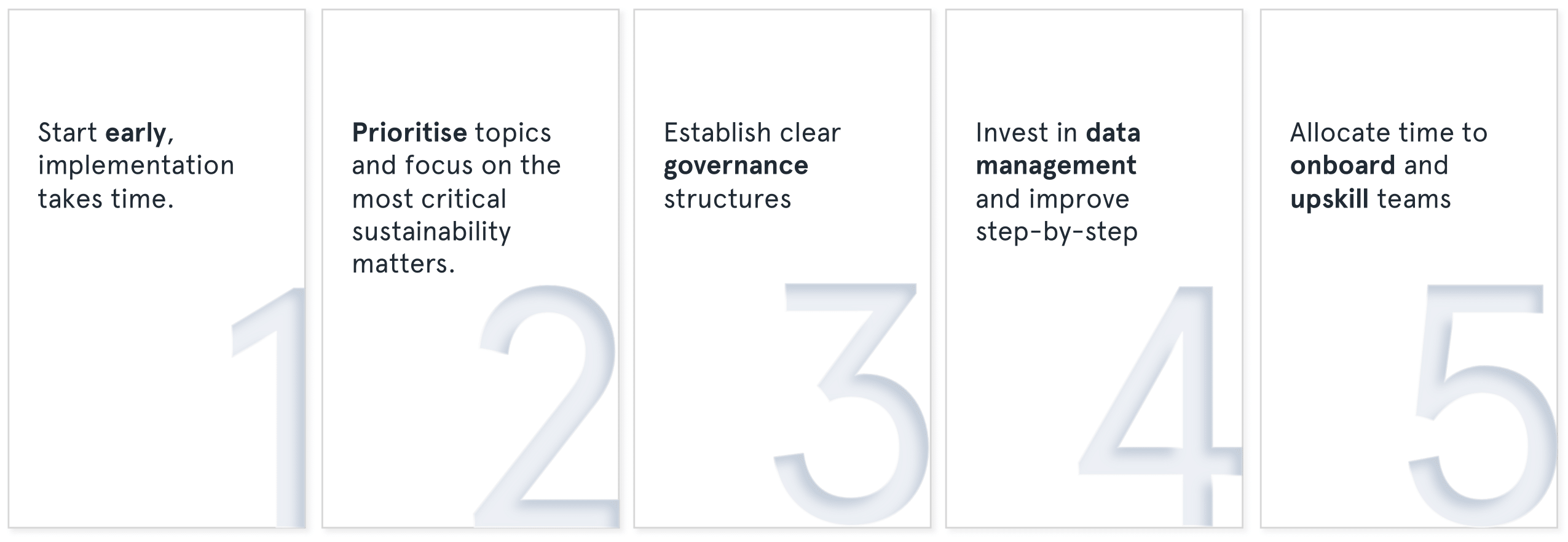 The demand for reliable ESG data will continue, regardless of where the final CSRD thresholds are set. Even if out of scope for CSRD, companies are likely to be faced with requests and requirements from key stakeholders. Hence, companies with strong reporting practices are better positioned to meet increasing expectations.