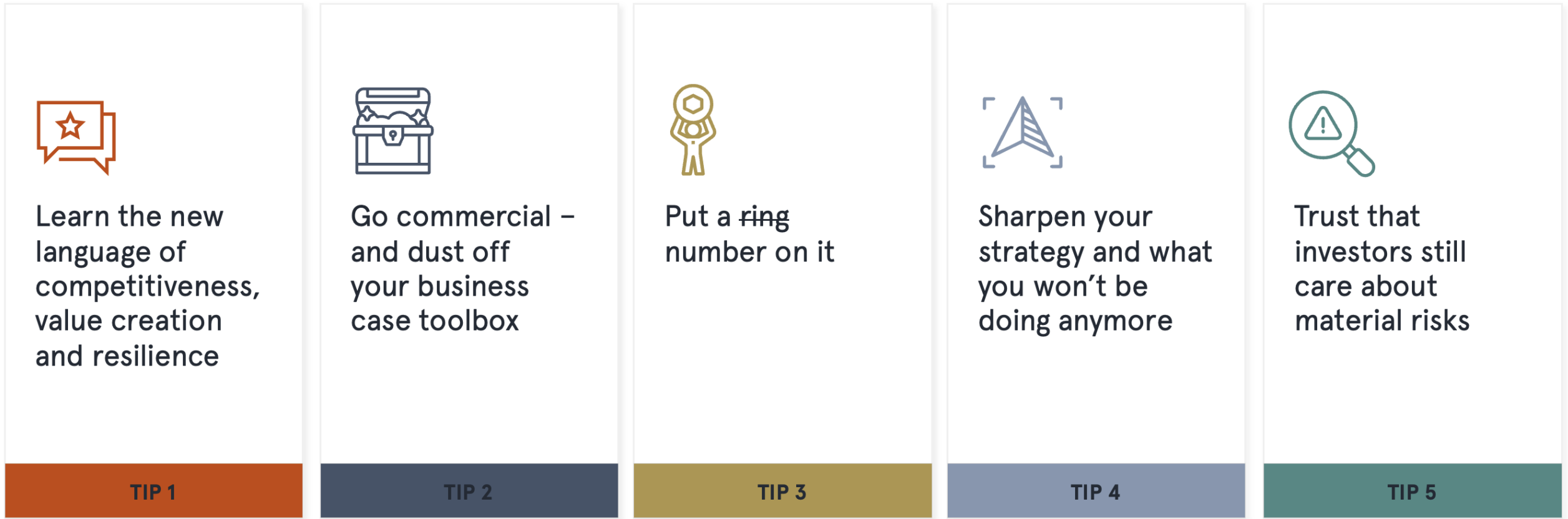 To influence decisions, sustainability teams need to use the financial language that guides resource allocation.