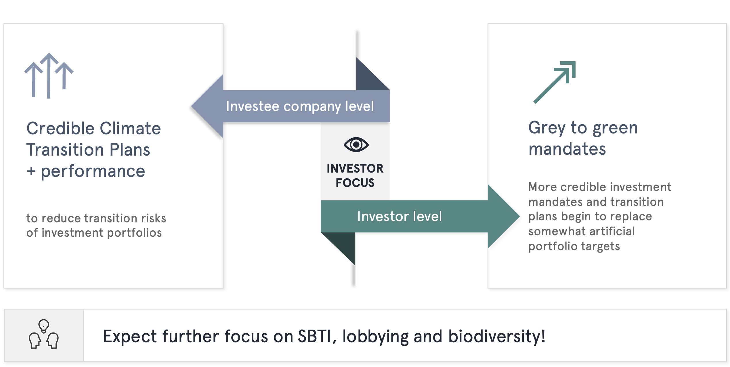 While rhetoric may have shifted in some regions, investors still expect companies to manage material sustainability risks. There is continued demand for credible transition plans backed by CAPEX pathways, stronger portfolio targets, and more attention to biodiversity, lobbying transparency, and supply chain resilience.